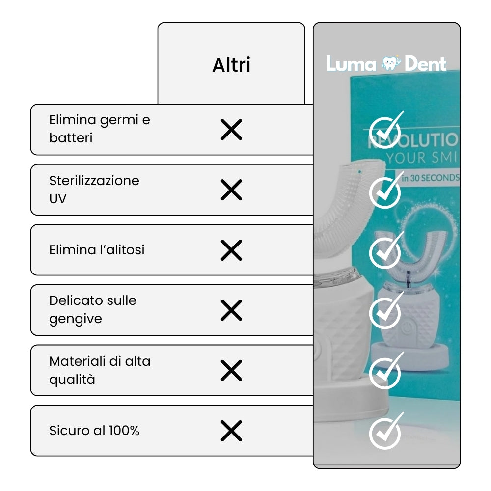 ⭐️⭐️⭐️⭐️⭐️Ho provato tanti spazzolini elettrici, ma Luma Dent è davvero unico. In pochi minuti al giorno ho notato i primi risultati sullo sbiancamento e una sensazione di pulizia profonda che non avevo mai provato. La tecnologia ultrasonica è fantastica! - Elisa S.